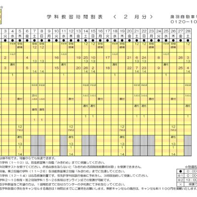| 卒業検定 | 毎週月・木曜日、日曜日(月に1~2回) |